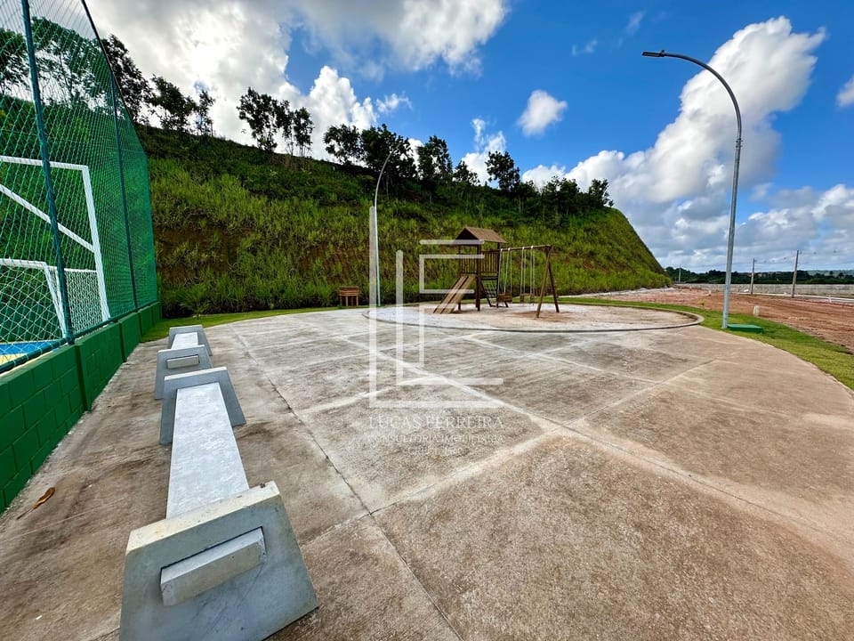 – Lotes a partir de 180m² a 320m² com uma área de lazer incrível com piscina, área gourmet, quadra poliesportiva, playground, praças arborizadas, tudo isso com segurança 24hrs.