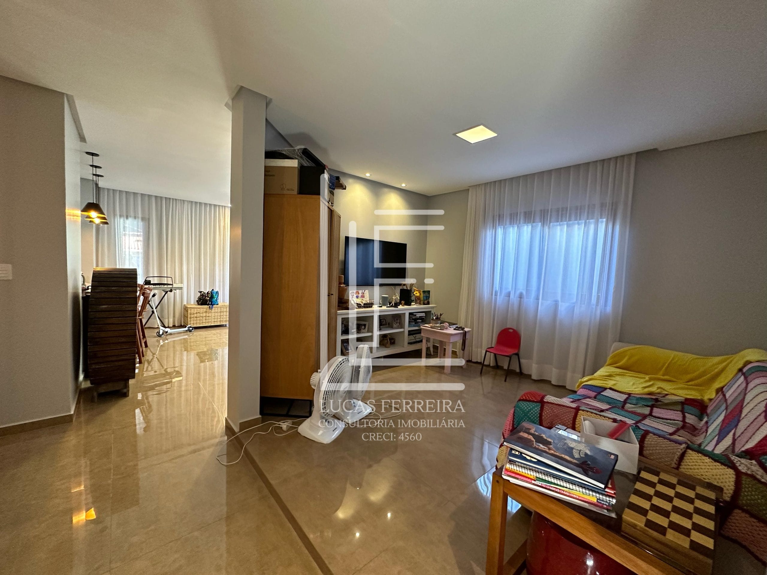 – Com sala ampla para 3 ambientes;